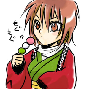 あの口にくわえてるのって、だんごの串?とか思ったんで。