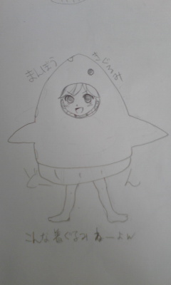 まんぼうのきぐるみを着た少女(?歳)を描いてみた。