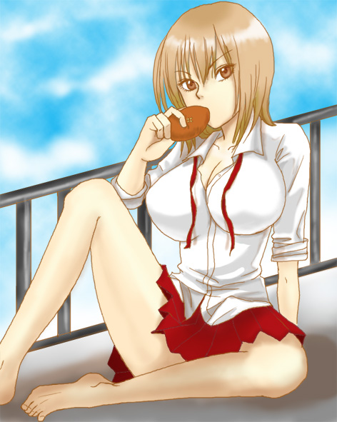 昼休みに屋上で、パン食べてる淡島。